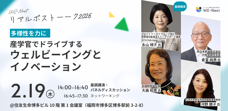 All WE-Net修了生 WE-Net福岡10期 WE-Net福岡8期 WE-Net福岡9期 イベントのご案内 お知らせ 活動レポート 月を選択 2026年1月 (1) 2025年8月 (1) 2025年2月 (1) 2025年1月 (2) 2024年10月 (1) 2024年8月 (1) 2024年6月 (1) 2024年4月 (1) 2024年2月 (2) 2023年11月 (1) 2023年9月 (1) 2023年7月 (1) 2023年6月 (1) 2023年4月 (1) 2023年2月 (2) 2023年1月 (2) 2022年12月 (3) 2022年8月 (1) 2022年6月 (2) 2022年5月 (4) 2022年4月 (1) 2022年3月 (1) 2022年1月 (2) イベントのご案内お知らせ WE-Next リアルボストーーク2026 開催決定! 多様性を力に 産学官でドライブするウェルビーイングとイノベーション 2026.01.12